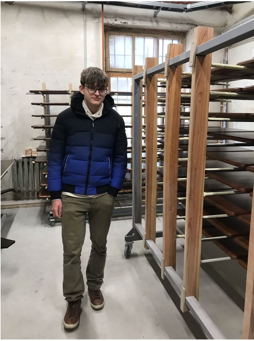 Ēnu dienas ietvaros Kristofers Andrutis zināšanas par mēbeļu izgatavošanu papildināja uzņēmumā